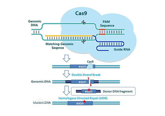 CRISPR/Cas9系统的工作原理是crRNA (CRISPR-derived RNA) 通过碱基配对与 tracrRNA (trans-activating RNA) 结合形成 tracrRNA/crRNA 复合物,此复合物引导核酸酶 Cas9 蛋白在与 crRNA 配对的序列靶位点处剪切双链 DNA,从而实现对基因组DNA序列进行编辑;而通过人工设计这两种 RNA,可以改造形成具有引导作用的gRNA (guide RNA),用以引导 Cas9 对 DNA 的定点切割。